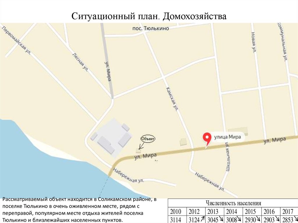 Ситуационный план. ДомохозяйстваРассматриваемый объект находится в Соликамском районе, в