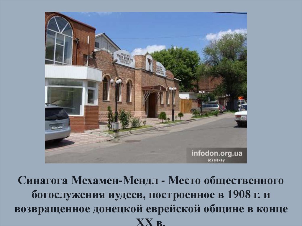 Синагога Мехамен-Мендл - Место общественногобогослужения иудеев, построенное в 1908 г. и