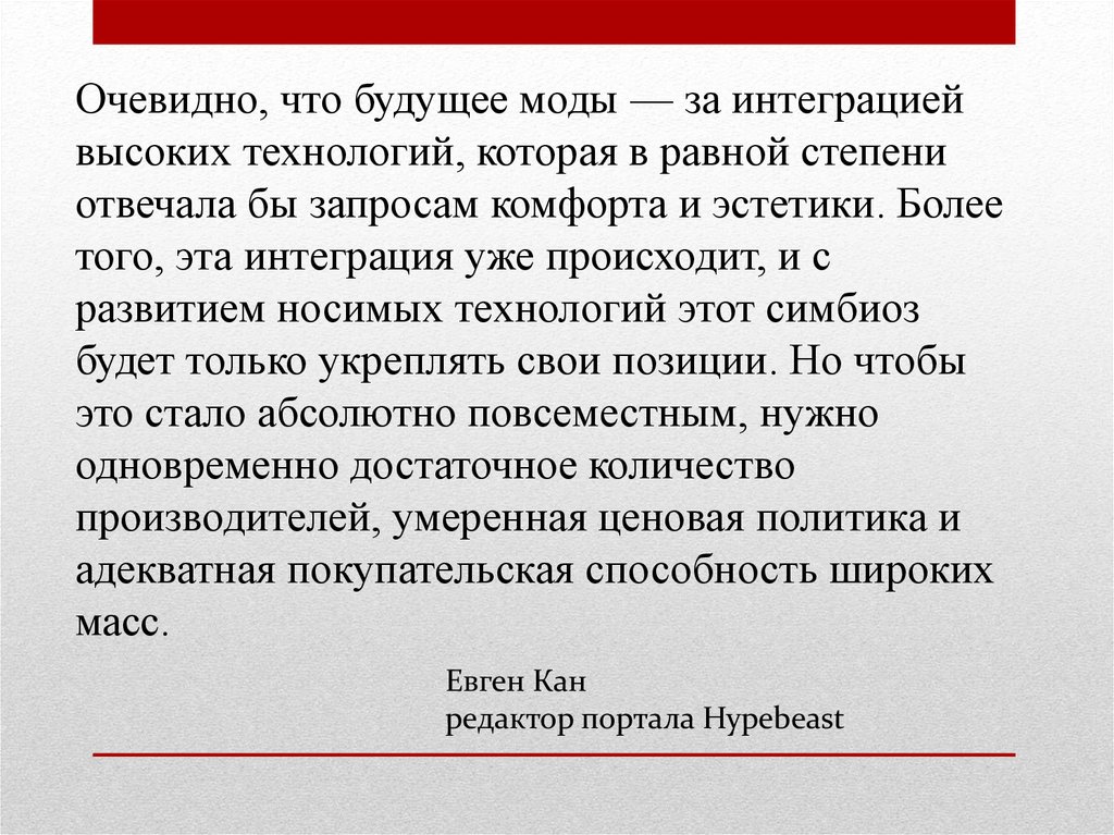 Очевидно, что будущее моды — за интеграциейвысоких технологий, которая в равной степени
