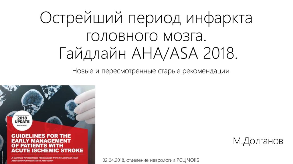 1. Острейший период инфаркта головного мозга. Гайдлайн AHA/ASA 2018.