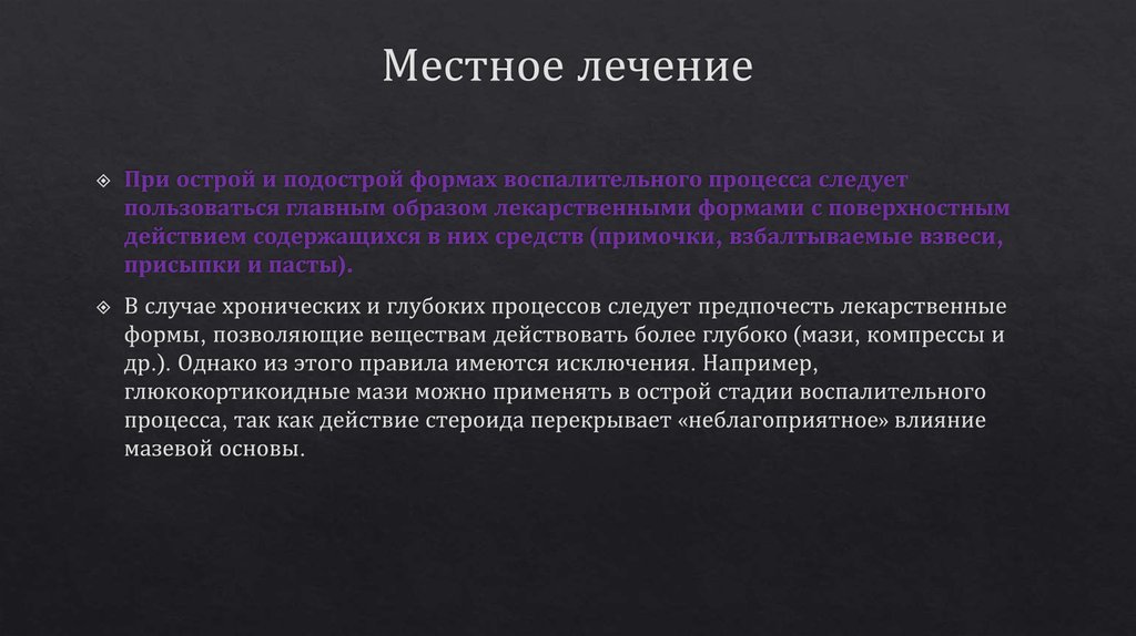 Принципы местного лечения кожных заболеваний