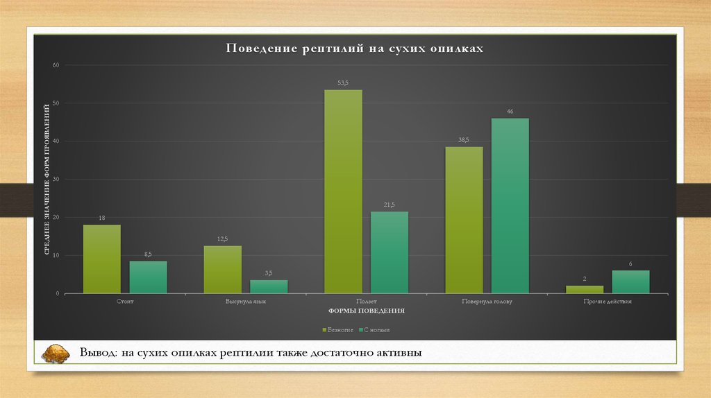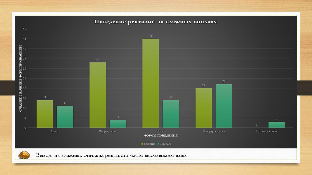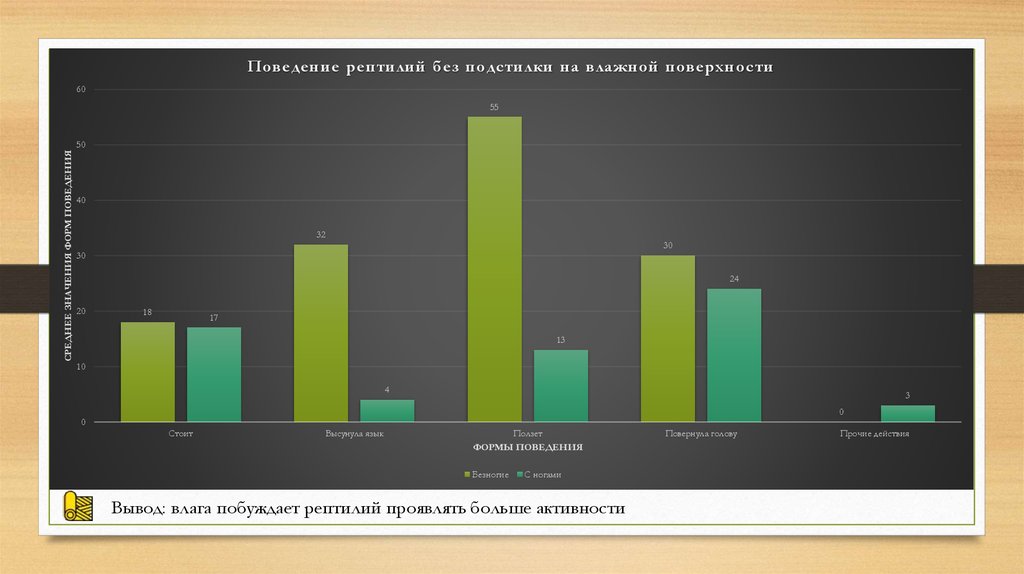 Вывод: на влажных опилках рептилии часто высовывают язык