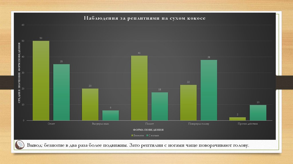 Вывод: безногие в два раза более подвижны. Зато рептилии с ногами чаще поворачивают голову.