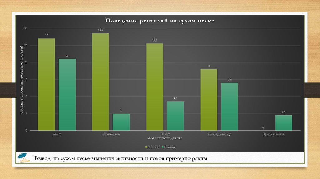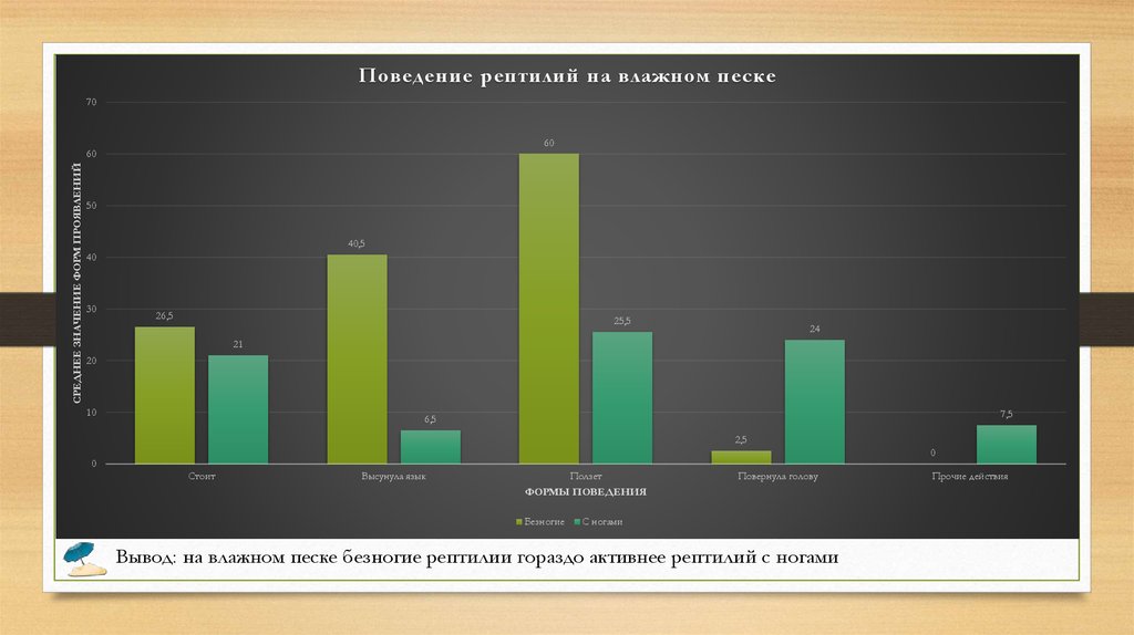 Вывод: на влажном песке безногие рептилии гораздо активнее рептилий с ногами