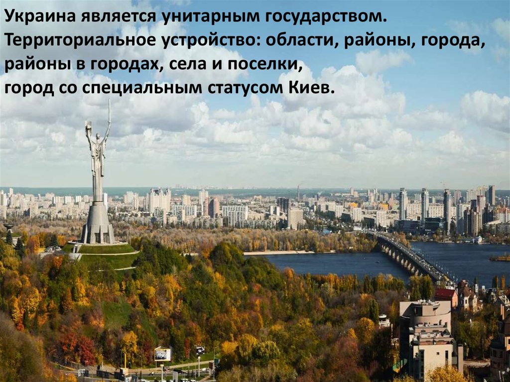 Украина является унитарным государством.Территориальное устройство: области, районы, города,