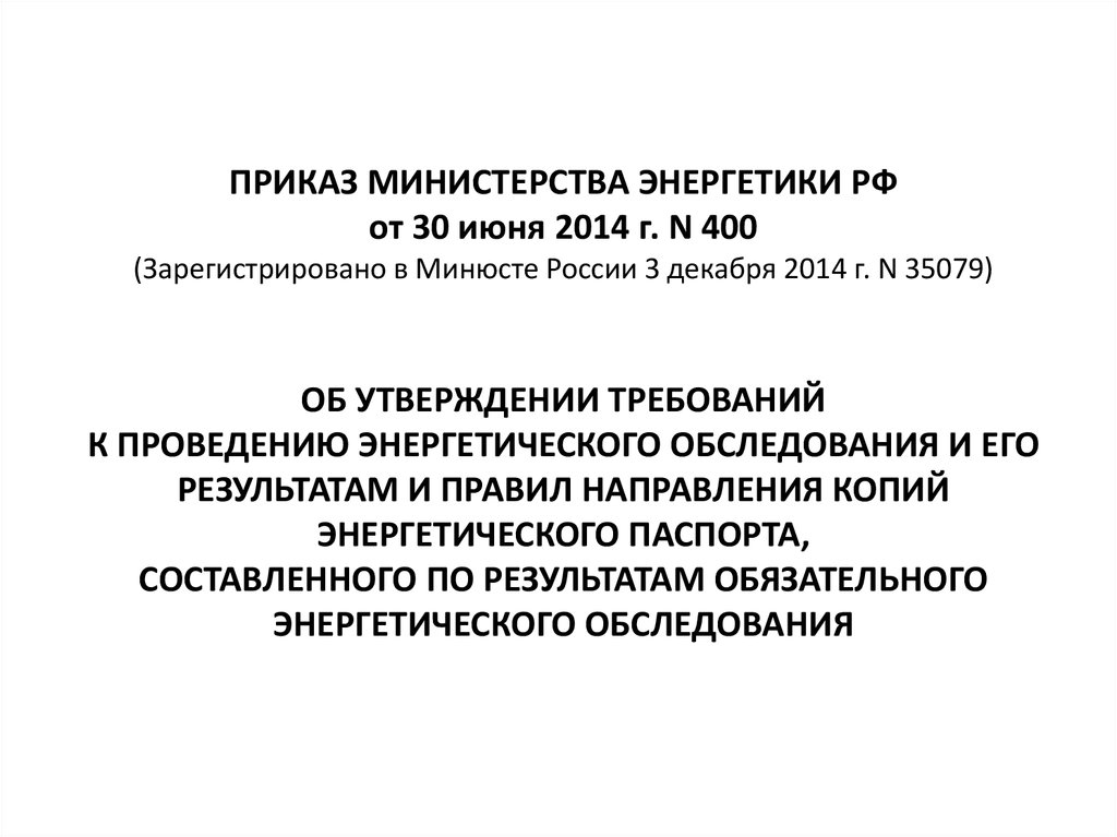 ПРИКАЗ МИНИСТЕРСТВА ЭНЕРГЕТИКИ РФот 30 июня 2014 г. N 400