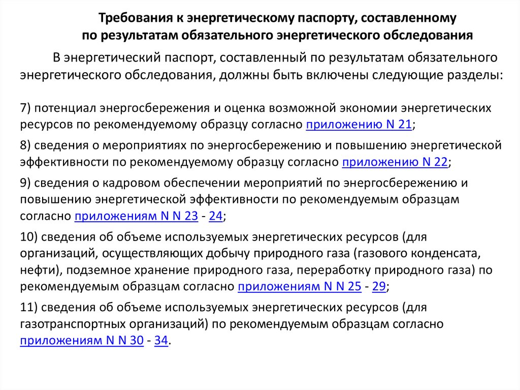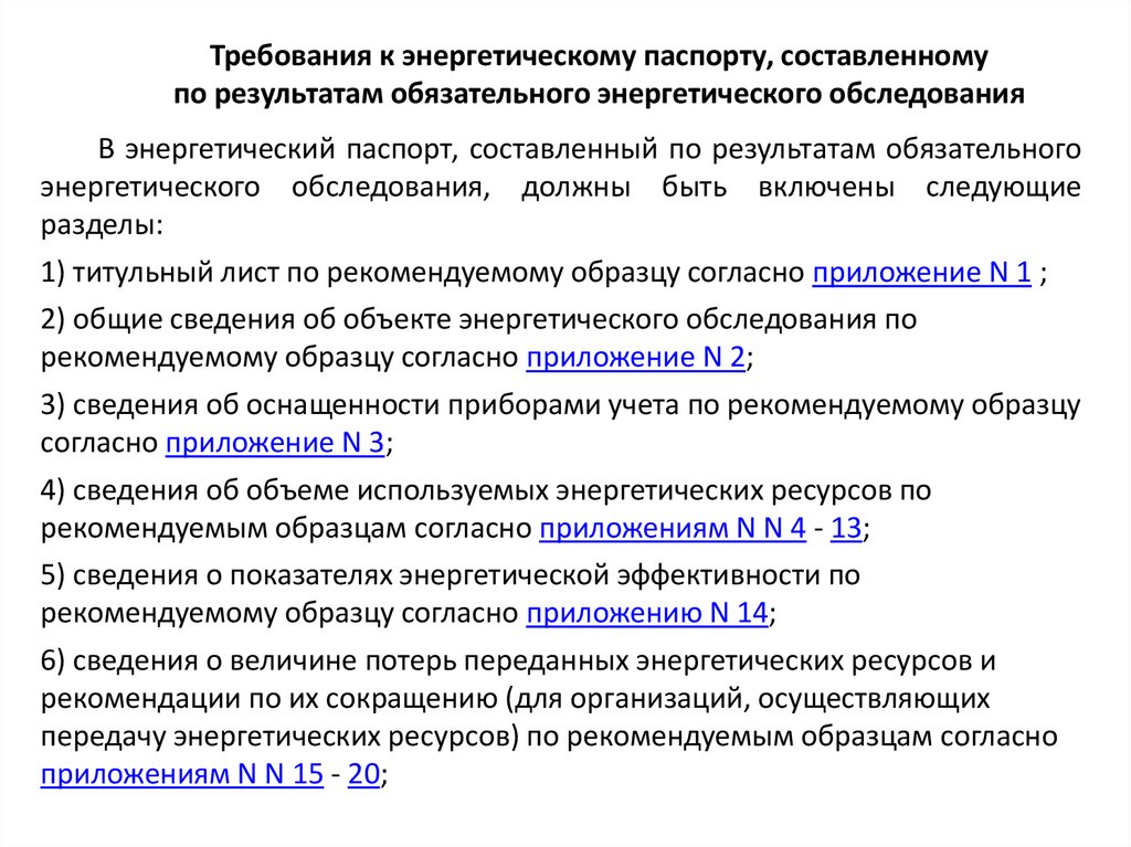 Требования к энергетическому паспорту, составленномупо результатам обязательного энергетического обследования