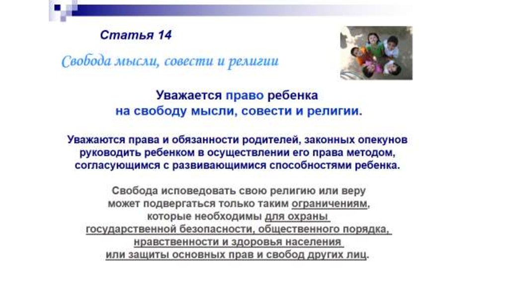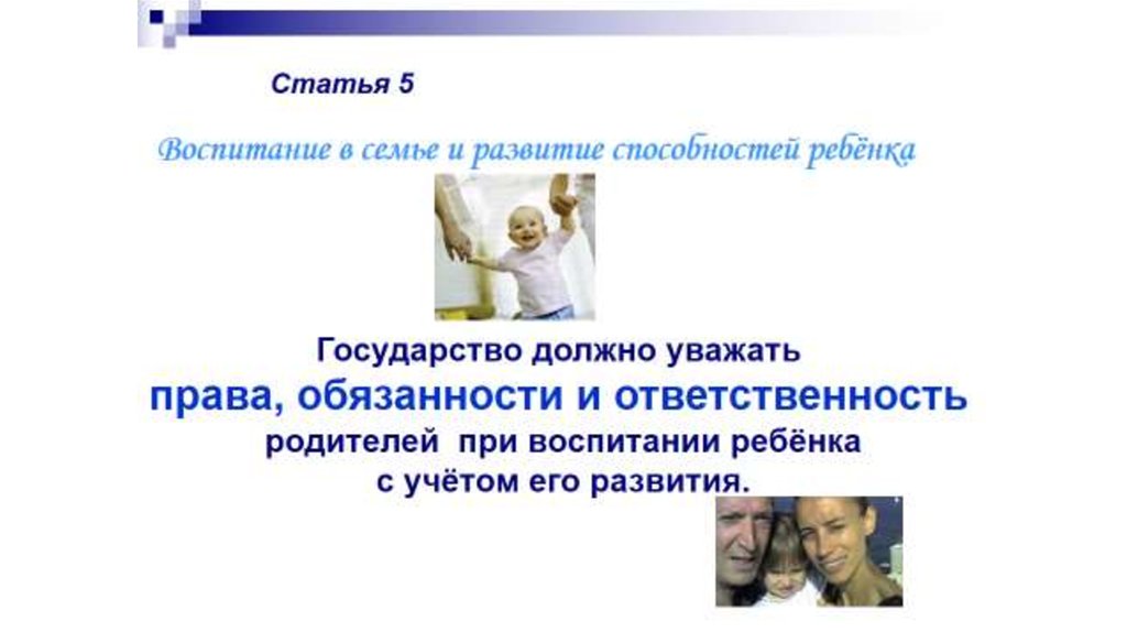 14. А родители, в свою очередь, должны управлять и руководить ребенком в осуществление им признанных настоящей Конвенцией прав и