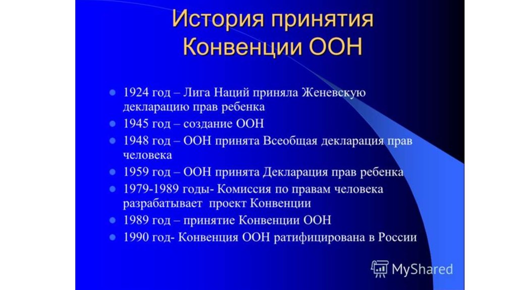 3. Декларация прав ребёнка состояла из 5 пунктов и называлась Женевской. В ней говорилось о принятии мер в отношении рабства,