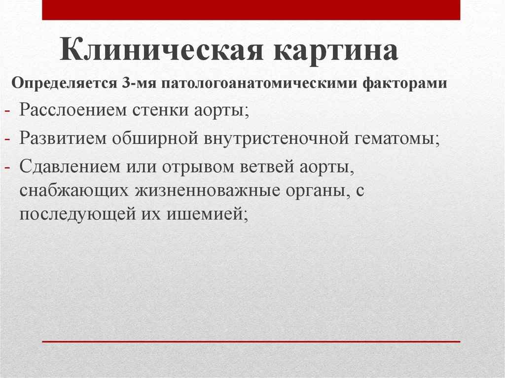 Клиническая картинаОпределяется 3-мя патологоанатомическими факторами