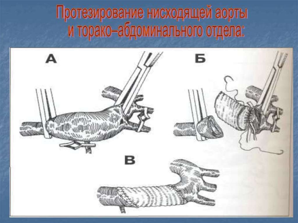 - Выполняют резекцию аневризмы с протезированием