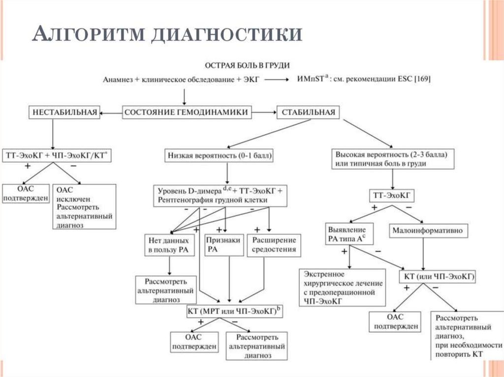 - Расслоением стенки аорты;
