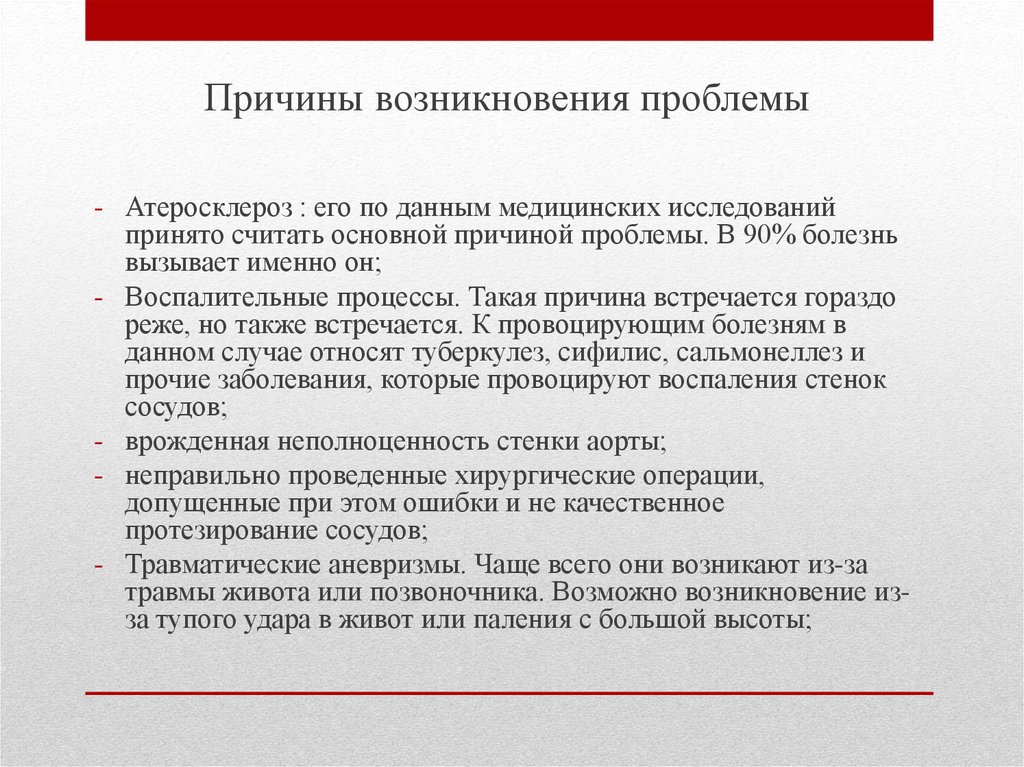 Причины возникновения проблемы- Атеросклероз : его по данным медицинских исследований