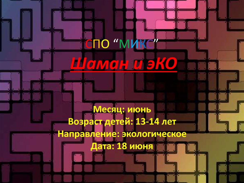 СПО “МИКС” Шаман и эКО. Месяц: июнь. Возраст детей: 13-14 лет. Направление: экологическое
