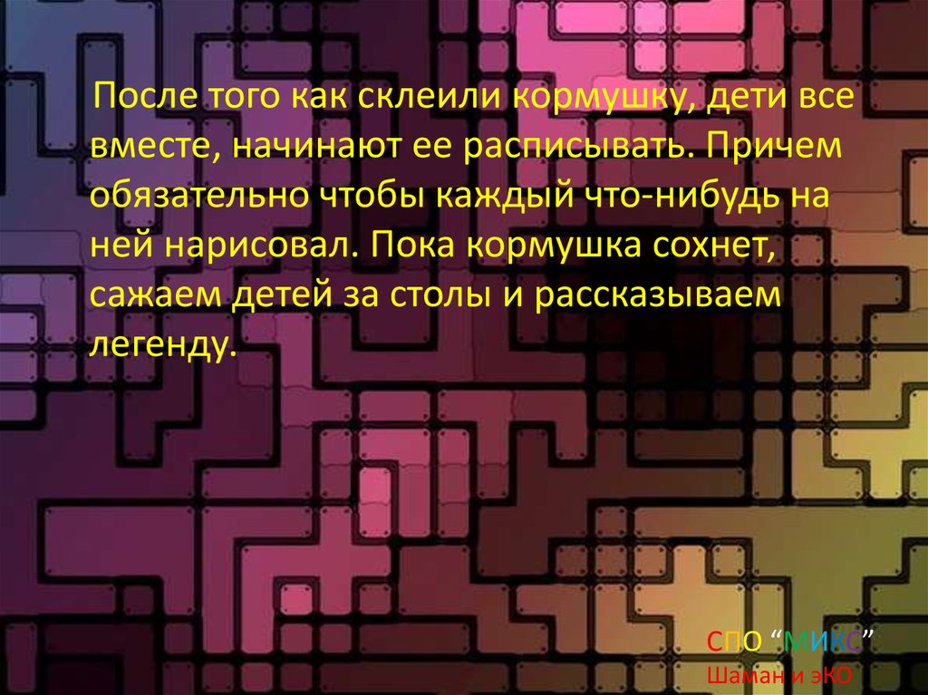 После того как склеили кормушку, дети всевместе, начинают ее расписывать. Причем