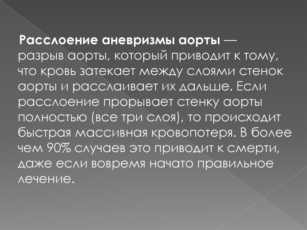 Расслоение аневризмы аорты —разрыв аорты, который приводит к тому,