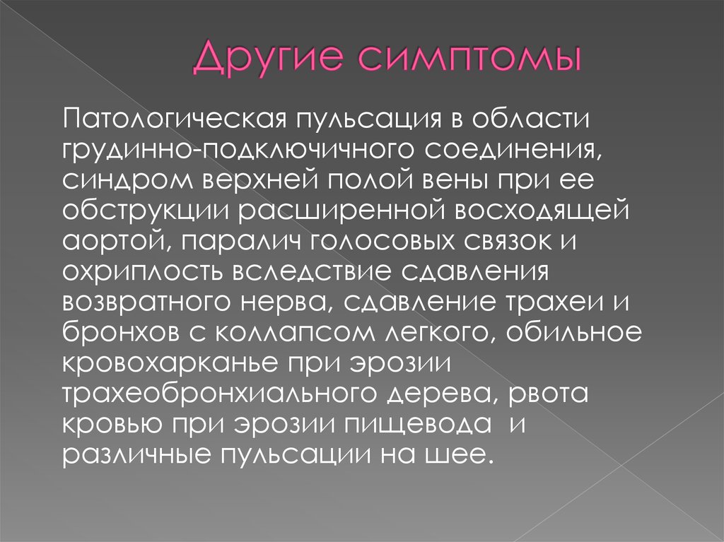 Патологическая пульсация в областигрудинно-подключичного соединения,