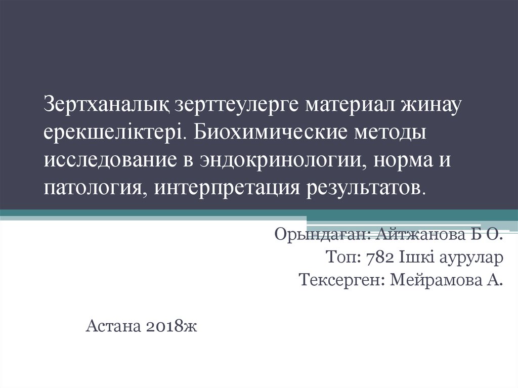 1. Зертханалық зерттеулерге материал жинау ерекшеліктері. Биохимические методы исследование в эндокринологии, норма и патология,