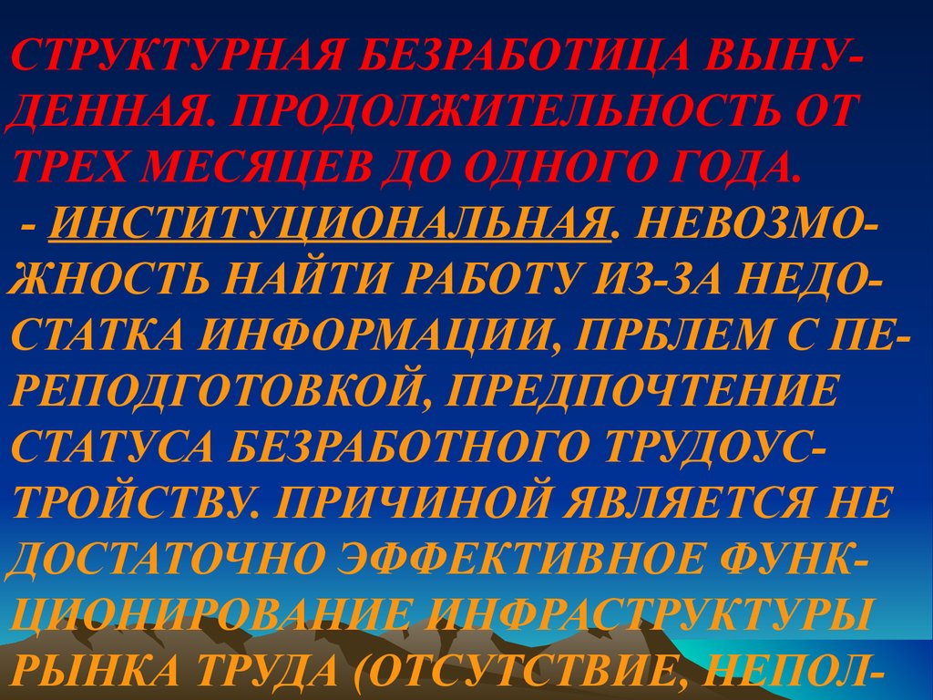 СТРУКТУРНАЯ БЕЗРАБОТИЦА ВЫНУДЕННАЯ. ПРОДОЛЖИТЕЛЬНОСТЬ ОТТРЕХ МЕСЯЦЕВ ДО ОДНОГО ГОДА.