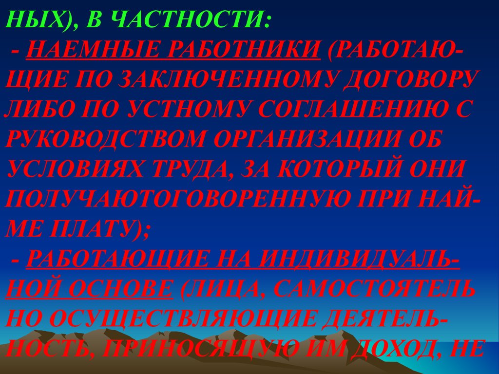 НЫХ), В ЧАСТНОСТИ:- НАЕМНЫЕ РАБОТНИКИ (РАБОТАЮЩИЕ ПО ЗАКЛЮЧЕННОМУ ДОГОВОРУ
