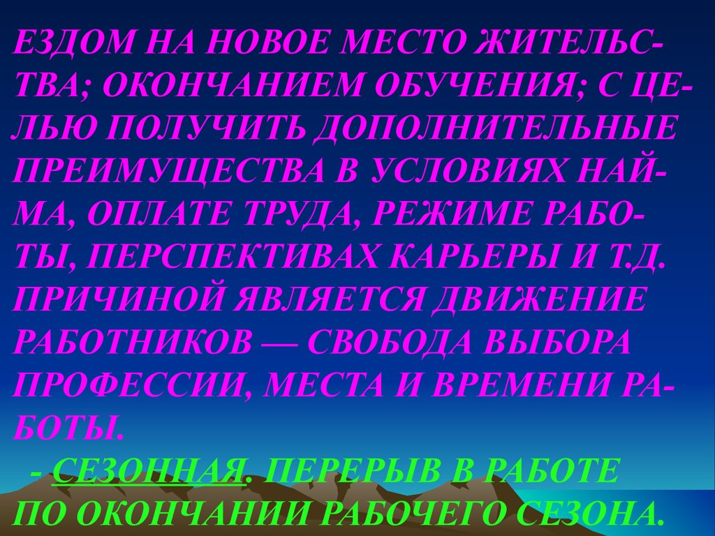 ЕЗДОМ НА НОВОЕ МЕСТО ЖИТЕЛЬСТВА; ОКОНЧАНИЕМ ОБУЧЕНИЯ; С ЦЕЛЬЮ ПОЛУЧИТЬ ДОПОЛНИТЕЛЬНЫЕПРЕИМУЩЕСТВА В УСЛОВИЯХ НАЙМА, ОПЛАТЕ ТРУДА, РЕЖИМЕ РАБОТЫ, ПЕРСПЕКТИВАХ КАРЬЕРЫ И Т.Д.