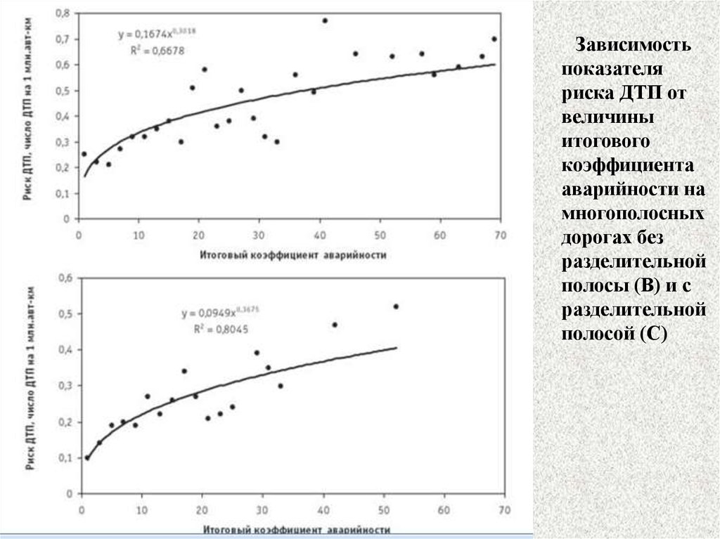 Схема взаимосвязи риска ДТП и сложности дорожных условий при