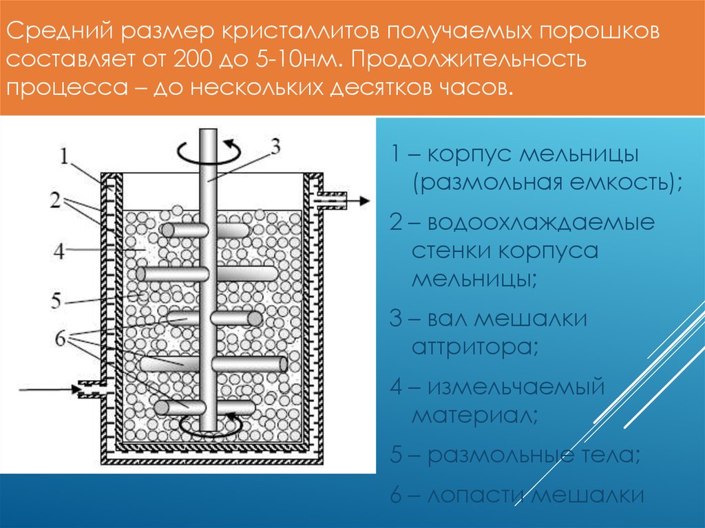 Средний размер кристаллитов получаемых порошковсоставляет от 200 до 5-10нм. Продолжительность