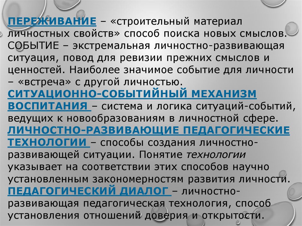 ПЕРЕЖИВАНИЕ – «строительный материалличностных свойств» способ поиска новых смыслов.