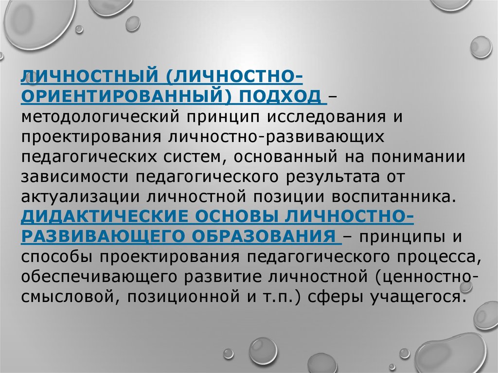 ЛИЧНОСТНЫЙ (ЛИЧНОСТНООРИЕНТИРОВАННЫЙ) ПОДХОД –методологический принцип исследования и