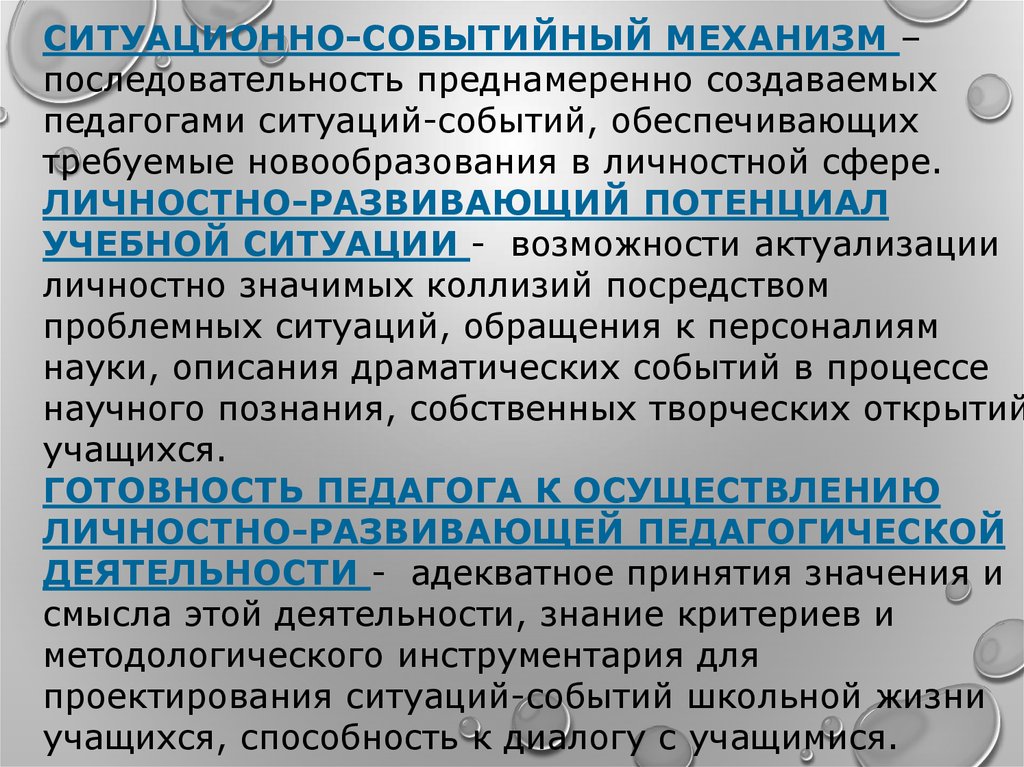 педагогами ситуаций-событий, обеспечивающих