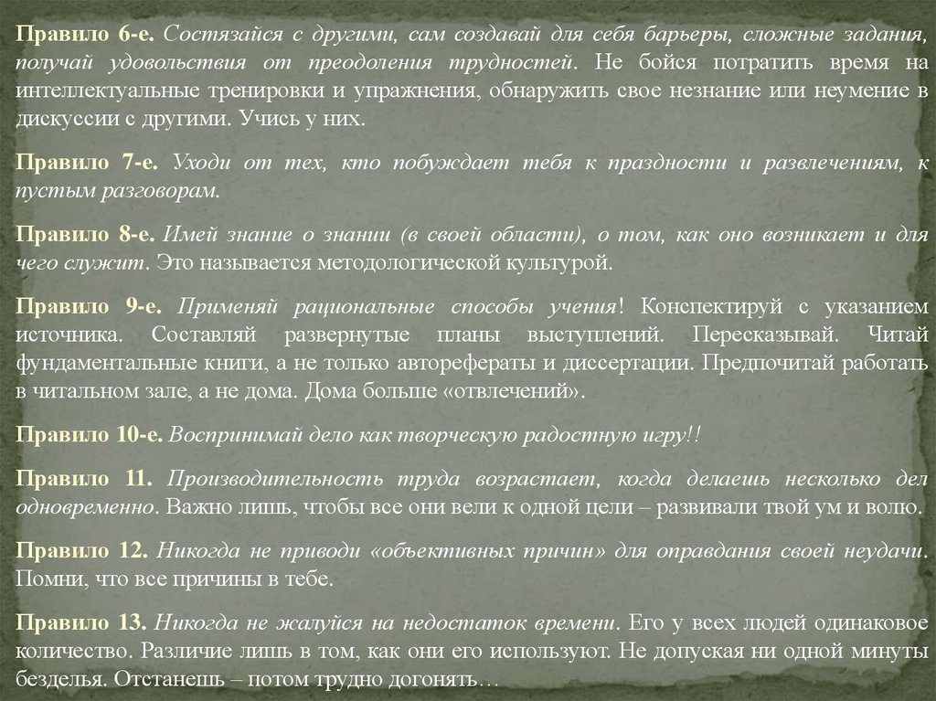 Правило 13. Никогда не жалуйся на недостаток времени. Его у всех людей одинаковое