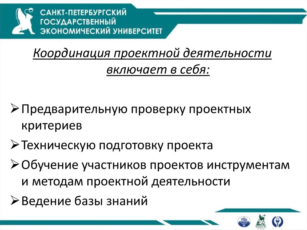 Координация проектной деятельностивключает в себя: