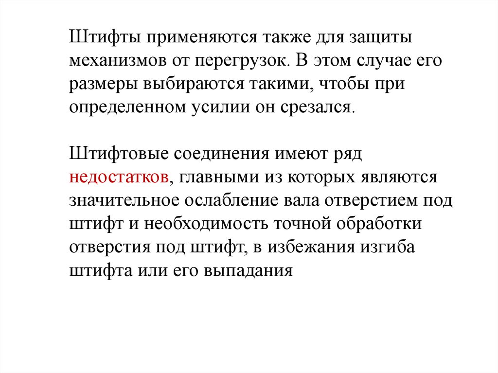 Штифты применяются также для защитымеханизмов от перегрузок. В этом случае его
