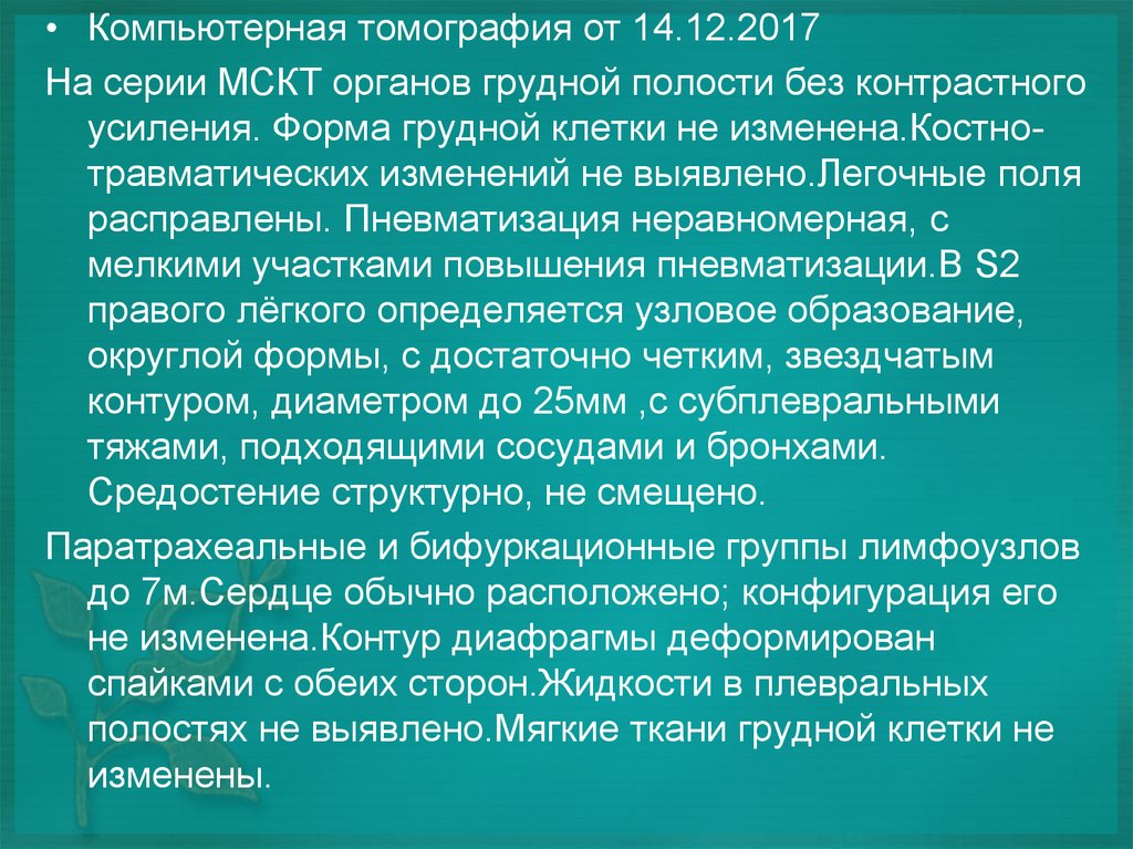 • Компьютерная томография от 14.12.2017На серии МСКТ органов грудной полости без контрастного