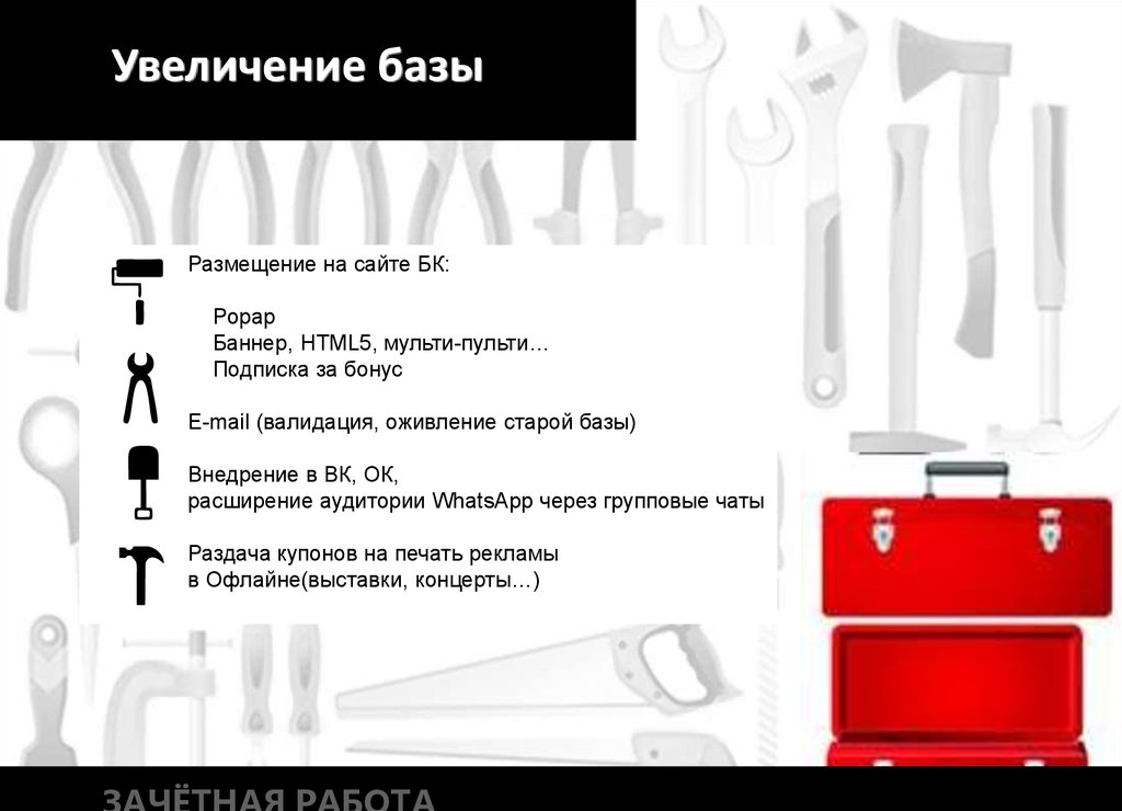 Увеличение базыРазмещение на сайте БК: