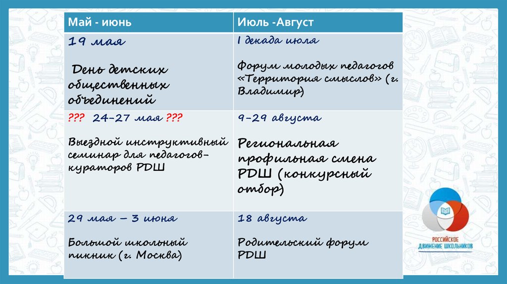 7. Проект #УчительскаяРДШ46 Цель: создание единого информационного пространства для педагогов. Формы работы: - семинары-совещания,