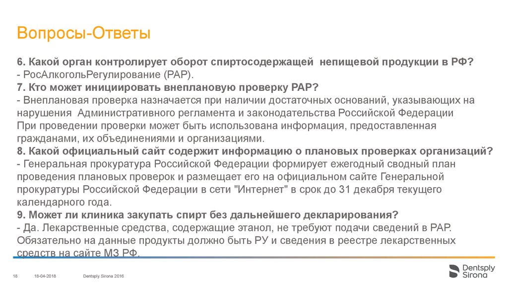 Вопросы-Ответы6. Какой орган контролирует оборот спиртосодержащей непищевой продукции в РФ?