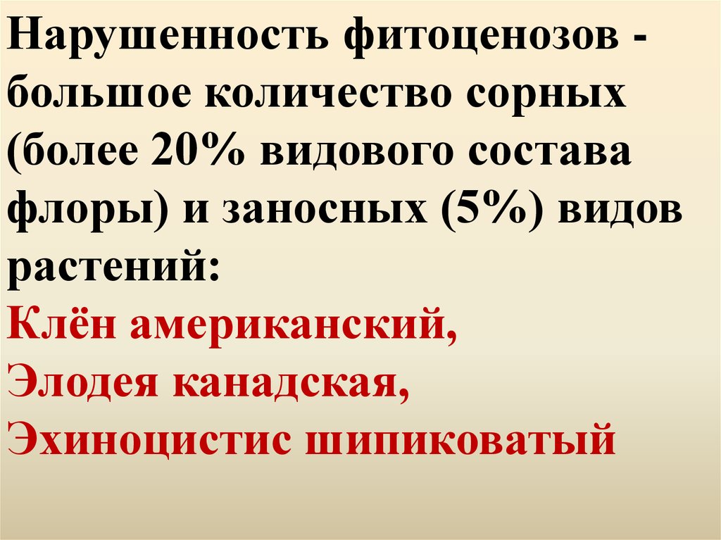 Нарушенность фитоценозов большое количество сорных(более 20% видового состава