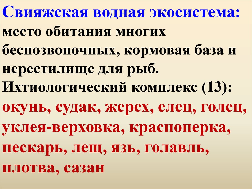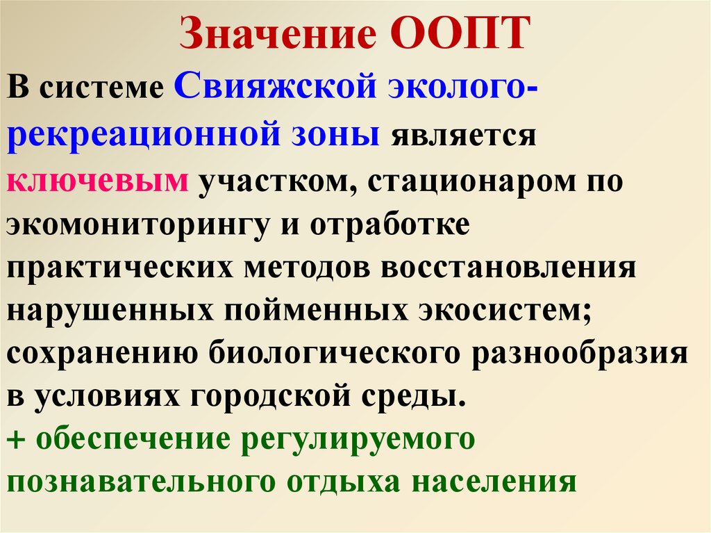 Значение ООПТВ системе Свияжской экологорекреационной зоны является