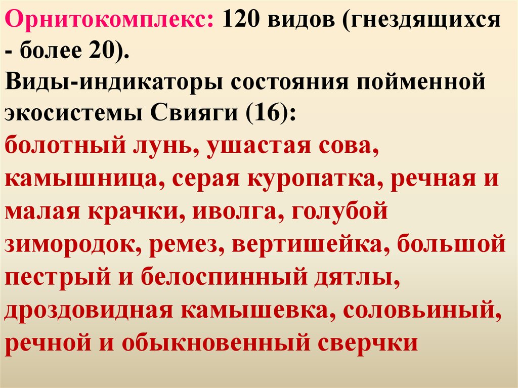 Орнитокомплекс: 120 видов (гнездящихся- более 20).