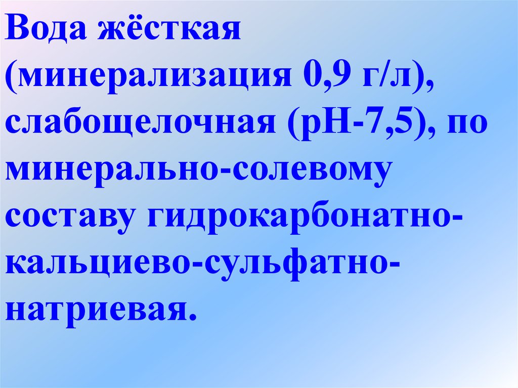 составу гидрокарбонатнокальциево-сульфатнонатриевая.