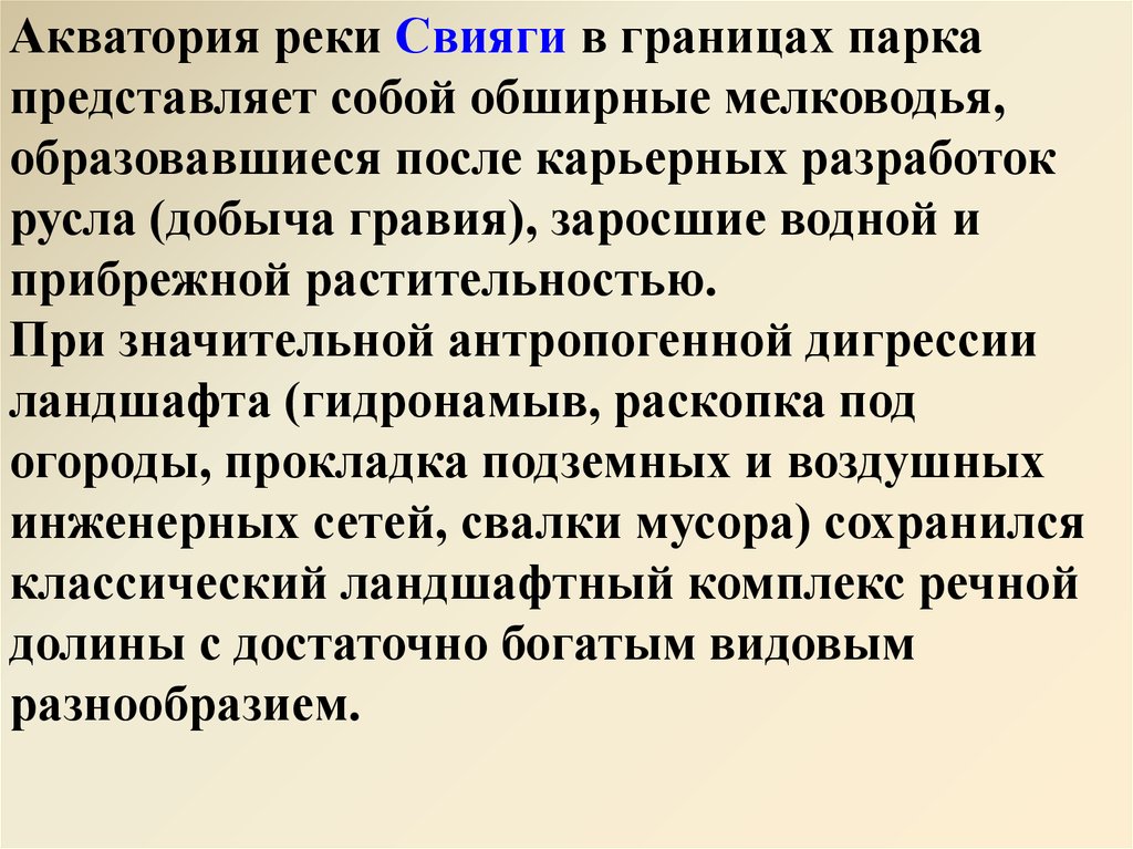 Акватория реки Свияги в границах паркапредставляет собой обширные мелководья,
