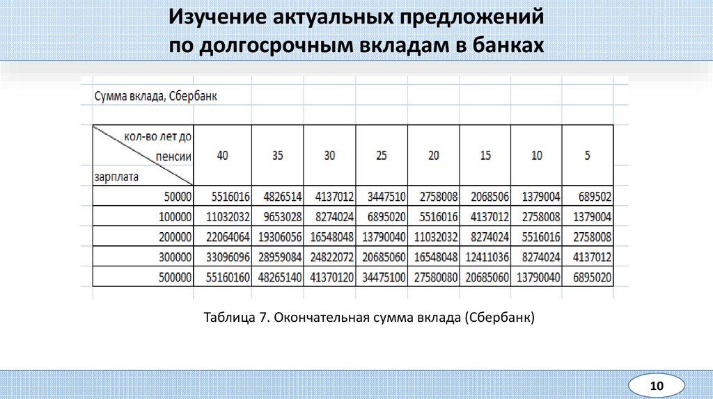 Таблица 7. Окончательная сумма вклада (Сбербанк)