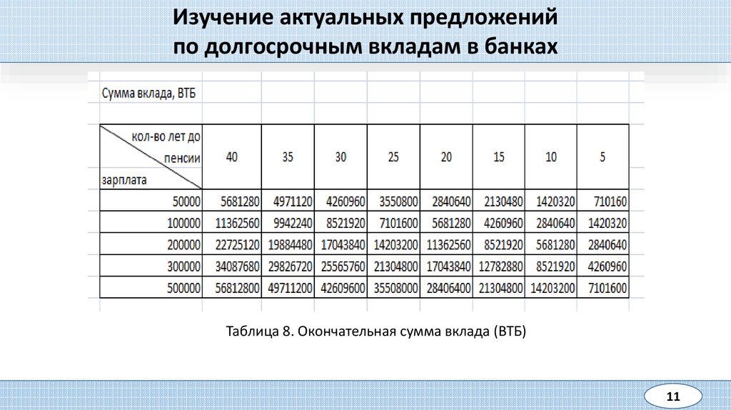 Таблица 8. Окончательная сумма вклада (ВТБ)