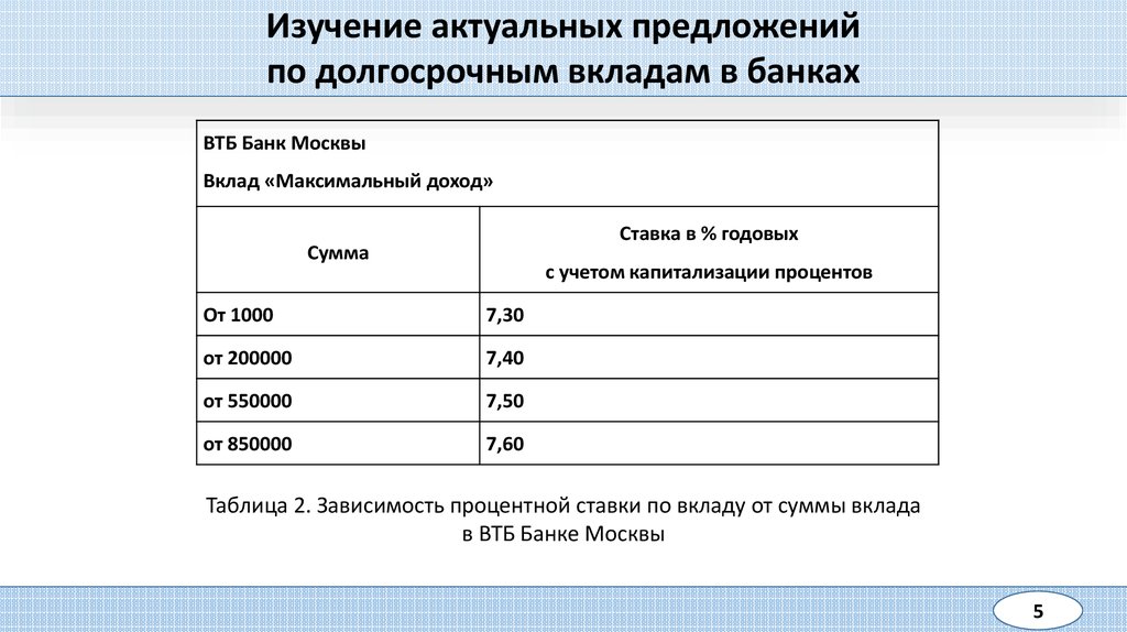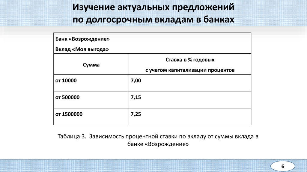 • изучение актуальных предложений по долгосрочным вкладам в