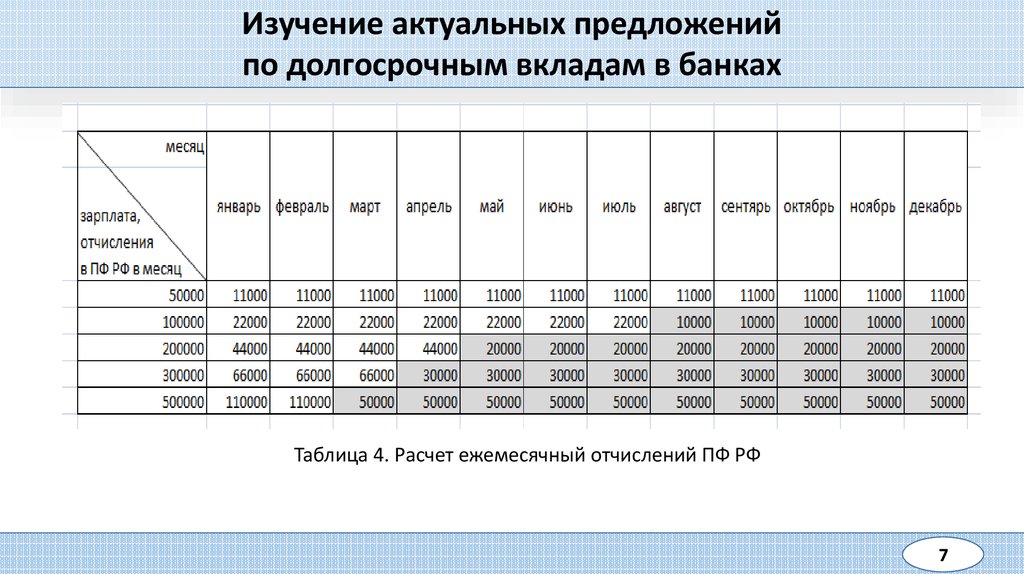 Таблица 4. Расчет ежемесячный отчислений ПФ РФ