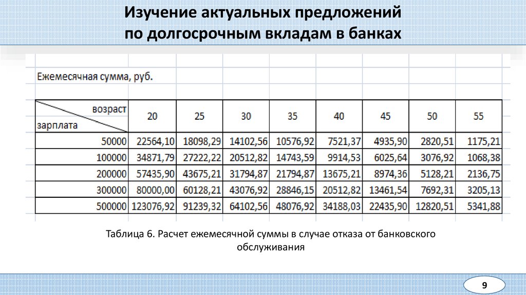 Таблица 6. Расчет ежемесячной суммы в случае отказа от банковского