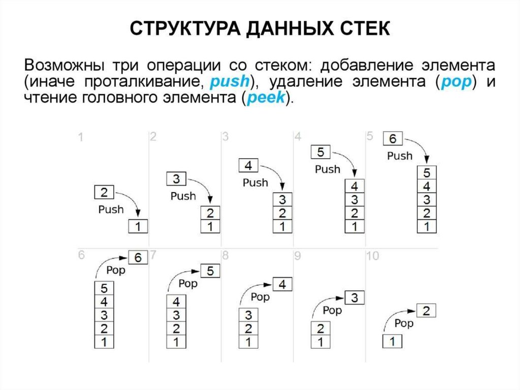 3) Какие операции возможны со стековыми