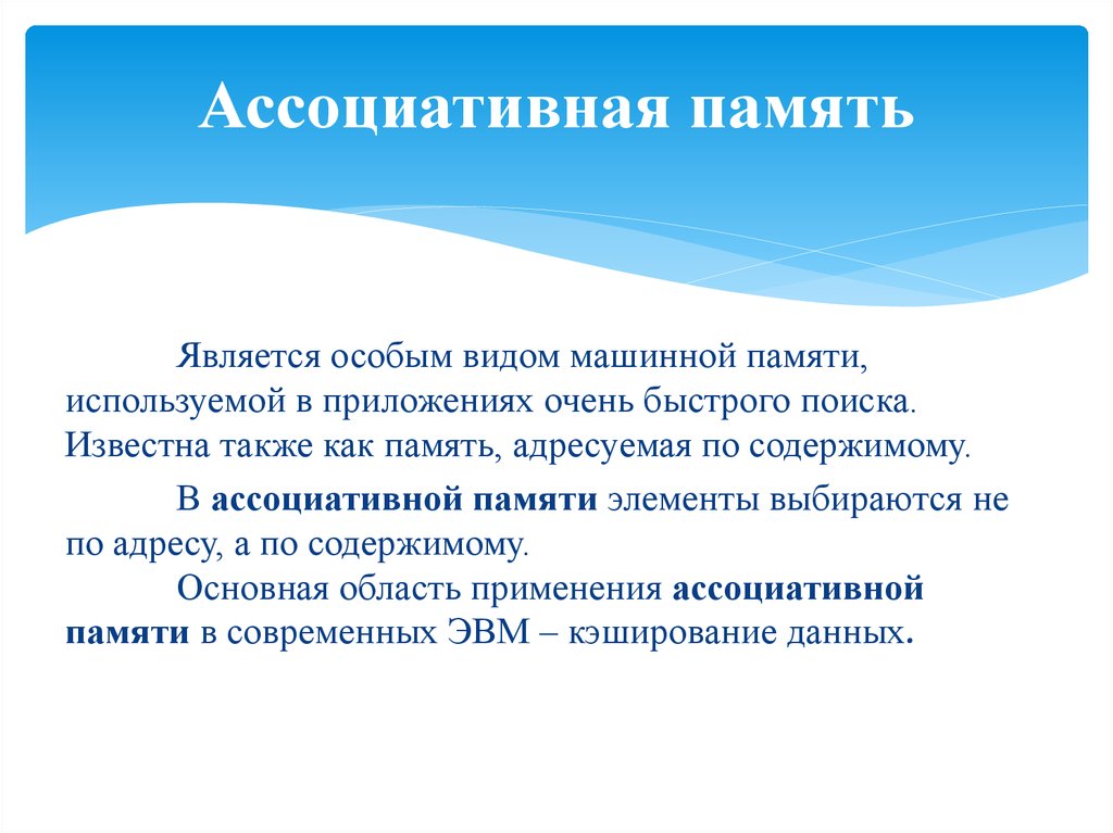 Ассоциативная памятьЯвляется особым видом машинной памяти,