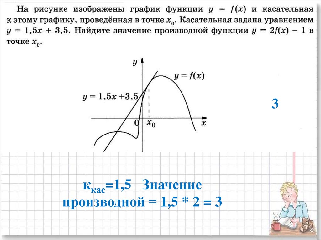 производной = 1,5 * 2 = 3